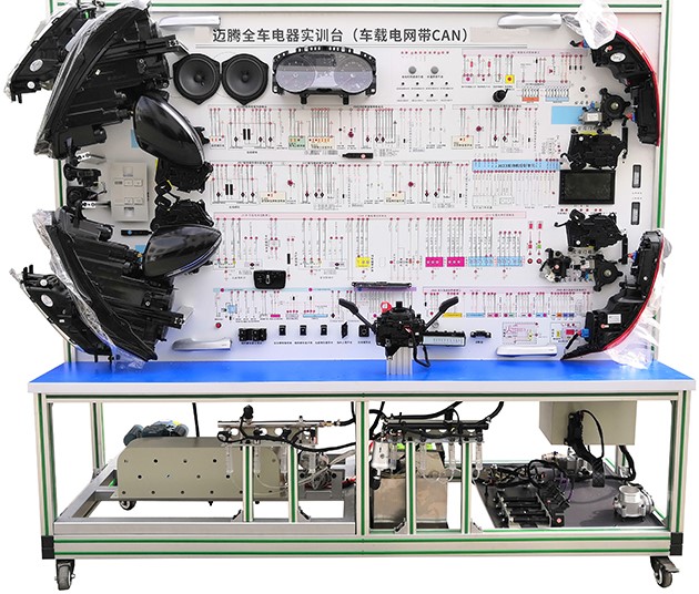 汽車電氣設(shè)備實(shí)訓(xùn)室。汽車電器設(shè)備實(shí)訓(xùn)室包含有汽車燈光系統(tǒng)、車載網(wǎng)絡(luò)系統(tǒng)、全車電器系統(tǒng)、汽車啟動(dòng)系統(tǒng)、汽車空調(diào)系統(tǒng)、全車線路試驗(yàn)臺(tái)、等實(shí)訓(xùn)教學(xué)設(shè)備。該實(shí)訓(xùn)室可以承擔(dān)《汽車構(gòu)造》、《汽車電器設(shè)備》、《汽車電控系統(tǒng)》、《汽車檢測(cè)與診斷》等課程的實(shí)踐教學(xué)任務(wù)?梢杂糜谘芯、分析全車電器系統(tǒng)、燈光系統(tǒng)、儀表系統(tǒng)等電器設(shè)備的電路及功能。利用這些系統(tǒng)進(jìn)行實(shí)踐教學(xué),使學(xué)生熟悉汽車電器的結(jié)構(gòu)和工作原理,掌握各個(gè)系統(tǒng)的基本組成電路,掌握主要電路的檢測(cè)方法和系統(tǒng)的故障特征,從而具有一定的檢測(cè)和調(diào)校能力。