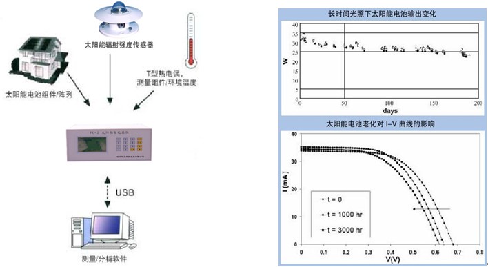 準(zhǔn)確測(cè)試光伏方陣和組件在野外條件下的太陽(yáng)輻射強(qiáng)度,環(huán)境溫度,風(fēng)速,電池組件的溫度,開(kāi)路電壓、短路電流、最大功率、最大功率點(diǎn)電壓、最大功率點(diǎn)電流和填充因子測(cè)算光伏方陣和組件在標(biāo)準(zhǔn)測(cè)試條件下(STC)下的開(kāi)路電壓、短路電流、最大功率、最大功率點(diǎn)電壓、最大功率點(diǎn)電流、填充因子和轉(zhuǎn)換效率