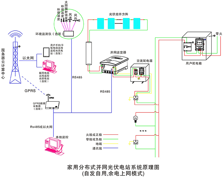 在晴朗的白天,裝在屋頂上的光伏組件發(fā)出的直流電經(jīng)過并網(wǎng)逆變器逆變成與電網(wǎng)同頻率同相位的單相交流電給負(fù)載進(jìn)行供電,在夜晚或陰雨天等太陽光照不足的情況下,系統(tǒng)處于待機(jī)狀態(tài),負(fù)載用電全部來自電網(wǎng)。您可以通過系統(tǒng)監(jiān)控軟件來實(shí)時(shí)查看系統(tǒng)的運(yùn)行狀態(tài)和故障信息,或者是選配遠(yuǎn)程通訊數(shù)據(jù)采集器,將系統(tǒng)工作數(shù)據(jù)通過GPRS或以太網(wǎng),傳輸?shù)侥氖謾C(jī)、平板電腦或任意一臺聯(lián)網(wǎng)的電腦,以便于您遠(yuǎn)程實(shí)時(shí)掌控電站的信息。
