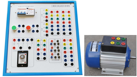 該任務(wù)盒有1.2mm優(yōu)質(zhì)鋼板加工噴涂制作,面板有鋁板加工沖孔而成,表面貼膜制作,內(nèi)置交流接觸器、中間繼電器、時間繼電器、斷路器、按鈕等,通過迭插端子與外部教具電機連接,滿足電機的多種教學目的,方便靈活。