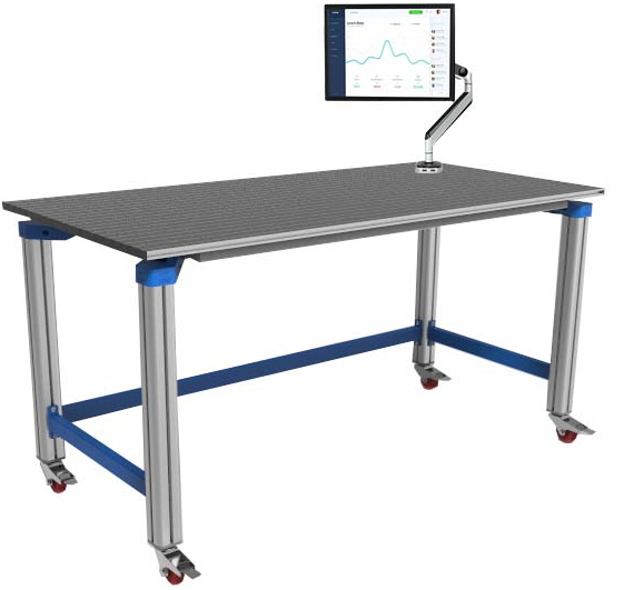 (1)采用工業(yè)鋁合金型材框架設計,臺面為鋁合金型材操作板,單根型材截面20×80mm,型材槽間距40mm,桌腳截面70×70mm。