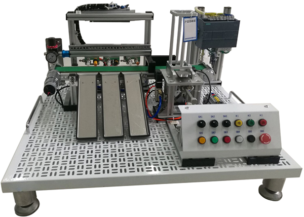 (1)系統(tǒng)包含氣動控制、電機傳動、位置控制、傳感器檢測等內容,為實際工業(yè)現(xiàn)場生產設備的微縮裝置。基于多種傳感器的檢測的精確定位,實現(xiàn)對不同材質、不同顏色物體的分揀。可充分鍛煉操作者系統(tǒng)接線、機械調試安裝、軟件編程、獨立構建控制系統(tǒng)、反饋整定、故障檢測及檢修的能力。配有空氣壓縮機:靜音無油,工作電源AC220V±10% 50Hz,輸入功率0.68kW;公稱容積24L,理論流量:116L/min,額定輸出氣壓0.7MPa。