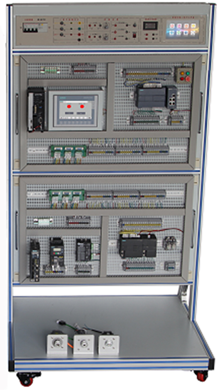 提供實訓所需的三相交流380V、單相220V電源接口,具有啟動、停止、急停系統(tǒng),設有漏電保護、電源指示、過流保護等功能。