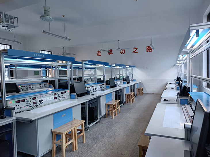 應(yīng)用電子技術(shù)實驗室、應(yīng)用電子實訓(xùn)室設(shè)備隸屬于電氣工程與自動化院校,應(yīng)用電子技術(shù)實驗室設(shè)備在學(xué)校的科學(xué)研究、學(xué)科建設(shè)、人才培養(yǎng)等方面發(fā)揮著重大作用。中心貫徹學(xué)!耙员緸楸尽苯ㄔO(shè)具有特色的一流本科教育理念,緊密圍繞社會經(jīng)濟發(fā)展需求,遵循教育規(guī)律,堅持“立足教育、面向全國、服務(wù)院校、服務(wù)行業(yè)”的辦學(xué)定位,適應(yīng)人工智能、電氣自動化、電子科學(xué)等科技發(fā)展,融教學(xué)、科研和生產(chǎn)為一體,強調(diào)理論與實踐密切結(jié)合,突出應(yīng)用電子特色,培養(yǎng)應(yīng)用電子、人工智能新技術(shù)應(yīng)用及開發(fā)能力,為電氣自動化、人工智能、應(yīng)用電子相關(guān)行業(yè)培養(yǎng)德、智、體、美、勞全面發(fā)展,具有扎實基礎(chǔ)理論、寬厚專業(yè)知識、較強實踐能力和良好職業(yè)素養(yǎng)的應(yīng)用型工程技術(shù)人才。中心突出校企深度合作長效機制,形成“專業(yè)特色與行業(yè)需求相融合、雙創(chuàng)教育與專業(yè)教育相融合、實踐教育與企業(yè)資源相融合、課內(nèi)培養(yǎng)與課外培養(yǎng)相融合、培養(yǎng)過程與企業(yè)協(xié)同相融合”的五融合人才培養(yǎng)特色,提高應(yīng)用電子實踐教學(xué)質(zhì)量。