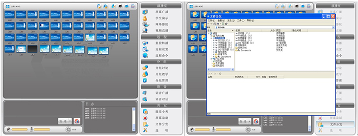 ⑥具有分屏廣播、文件分發(fā)、作業(yè)提交、網(wǎng)絡考場、遠程輔導、遠程監(jiān)控、網(wǎng)絡影院、語音廣播、語音對話、錄制與回放功能。
