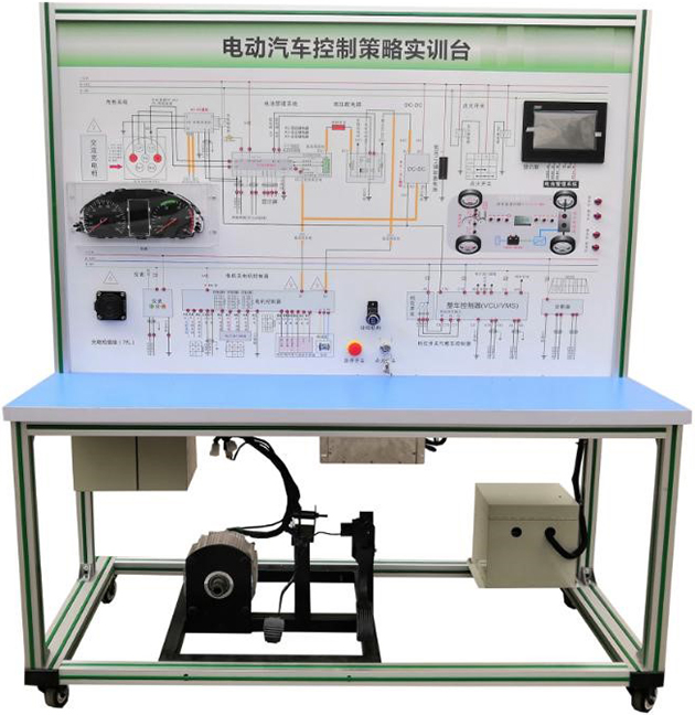 純電動(dòng)汽車電控系統(tǒng)教學(xué)平臺(tái)采用純電動(dòng)車控制策略系統(tǒng)(包含電機(jī)控制、電池管理、VCU控制、車載充電機(jī)、電源轉(zhuǎn)換系統(tǒng)、高壓安全系統(tǒng))的真實(shí)器件制作,包含電池及管理系統(tǒng)、電機(jī)及控制系統(tǒng)、車載充電系統(tǒng)、整車控制器VCU及控制系統(tǒng)、電源轉(zhuǎn)換系統(tǒng)(AC-DC模塊、DC-DC模塊、DC-AC模塊)、高壓安全系統(tǒng),真實(shí)展示電動(dòng)汽車控制策略系統(tǒng)的結(jié)構(gòu)原理與工作過程,純電動(dòng)車控制策略系統(tǒng)動(dòng)力性能、可靠性能、安全性能。實(shí)現(xiàn)控制策略演示驗(yàn)證操作,包括起步模式、正常驅(qū)動(dòng)模式、能量管理策略、安全控制策略以及其他情況下的控制策略等,并對(duì)控制策略進(jìn)行檢測(cè)分析診斷。