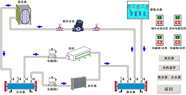 5、工作流程圖板3套:工作流程圖板詳細(xì)說(shuō)明制冷系統(tǒng)流程、監(jiān)測(cè)點(diǎn)溫度、系統(tǒng)壓力、工作狀態(tài)指示、系統(tǒng)部件說(shuō)明。