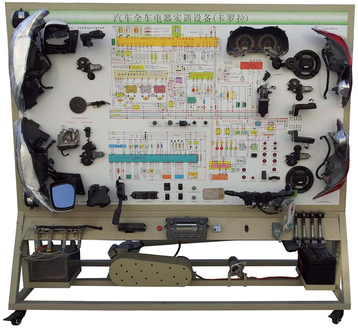汽車電氣設(shè)備實(shí)訓(xùn)室。汽車電器設(shè)備實(shí)訓(xùn)室包含有汽車燈光系統(tǒng)、車載網(wǎng)絡(luò)系統(tǒng)、全車電器系統(tǒng)、汽車啟動(dòng)系統(tǒng)、汽車空調(diào)系統(tǒng)、全車線路試驗(yàn)臺(tái)、等實(shí)訓(xùn)教學(xué)設(shè)備。該實(shí)訓(xùn)室可以承擔(dān)《汽車構(gòu)造》、《汽車電器設(shè)備》、《汽車電控系統(tǒng)》、《汽車檢測(cè)與診斷》等課程的實(shí)踐教學(xué)任務(wù)?梢杂糜谘芯、分析全車電器系統(tǒng)、燈光系統(tǒng)、儀表系統(tǒng)等電器設(shè)備的電路及功能。利用這些系統(tǒng)進(jìn)行實(shí)踐教學(xué),使學(xué)生熟悉汽車電器的結(jié)構(gòu)和工作原理,掌握各個(gè)系統(tǒng)的基本組成電路,掌握主要電路的檢測(cè)方法和系統(tǒng)的故障特征,從而具有一定的檢測(cè)和調(diào)校能力。