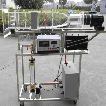 循環(huán)防腐水泵,轉(zhuǎn)子流量計(jì),翅片管式換熱器,風(fēng)洞實(shí)驗(yàn)段,離心式風(fēng)機(jī),自動(dòng)調(diào)節(jié)風(fēng)門(mén),笛形管及差壓測(cè)風(fēng)速裝置,加熱由固體調(diào)壓模塊無(wú)級(jí)調(diào)節(jié),控制測(cè)試儀表箱,不銹鋼加熱水箱,巡檢儀顯示溫度、水和風(fēng)的阻力及風(fēng)速,不銹鋼臺(tái)架及控制屏。