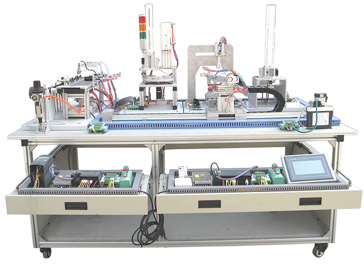 光機電氣一體化控制實訓平臺由由鋁合金導軌式實訓臺、典型的機電一體化設(shè)備的機械部件、PLC模塊、變頻器模塊、按鈕模塊、電源模塊、模擬生產(chǎn)設(shè)備實訓模塊、接線端子排和各種傳感器、計算機等組成。整體結(jié)構(gòu)采用開放式和拆裝式,實訓裝置用于機械部件組裝,可根據(jù)現(xiàn)有的機械部件組裝生產(chǎn)設(shè)備,也可添加機械部件組裝其他生產(chǎn)設(shè)備,使整個裝置能夠靈活的按教學或競賽要求組裝具有生產(chǎn)功能的機電一體化設(shè)備。模塊采用標準結(jié)構(gòu)和抽屜式模塊放置架,互換性強;按具有生產(chǎn)性功能和整合學習功能的原則確定模塊內(nèi)容,使教學或競賽時可方便的選擇需要的模塊。設(shè)備需完全符合電工電子全國職業(yè)技能大賽所要求,同時還要求具有可拓展功能,可以組成更加大型的生產(chǎn)模擬系統(tǒng),以配合各個用戶學校不同層次,不同專業(yè)的教學及培訓要求。