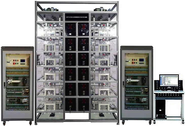 電梯控制技術(shù)綜合實(shí)訓(xùn)裝置是專門為職業(yè)院校開設(shè)的電氣自動化、機(jī)電一體化、機(jī)械制造與自動化等相關(guān)專業(yè)而研制的,裝置根據(jù)智能建筑中升降電梯的機(jī)構(gòu)按照一定的比例縮小設(shè)計(jì),所用設(shè)備、器件與實(shí)際電梯基本一致,采用槽鋼方管框架結(jié)構(gòu)整體設(shè)計(jì),正面使用透明有機(jī)玻璃面板,融低壓電氣、PLC、變頻調(diào)速、智能人機(jī)、傳感檢測、視頻監(jiān)控、智能考核系統(tǒng)等于一體,實(shí)現(xiàn)智能電梯復(fù)雜的開關(guān)量控制、時(shí)序邏輯控制。通過該裝置的操作訓(xùn)練可考核學(xué)生掌握智能電梯的裝調(diào)與維護(hù)綜合能力,如電梯呼梯盒的安裝、井道信息系統(tǒng)的安裝、平層開關(guān)檢測位置調(diào)整、門機(jī)機(jī)構(gòu)調(diào)整、電氣控制柜的器件安裝、接線、變頻器參數(shù)設(shè)置、PLC編程與調(diào)試、電梯群控功能調(diào)試、電梯故障排除、運(yùn)行維護(hù)等,除了滿足專業(yè)實(shí)訓(xùn)教學(xué),還能開展技能考核以及職業(yè)技能競賽。