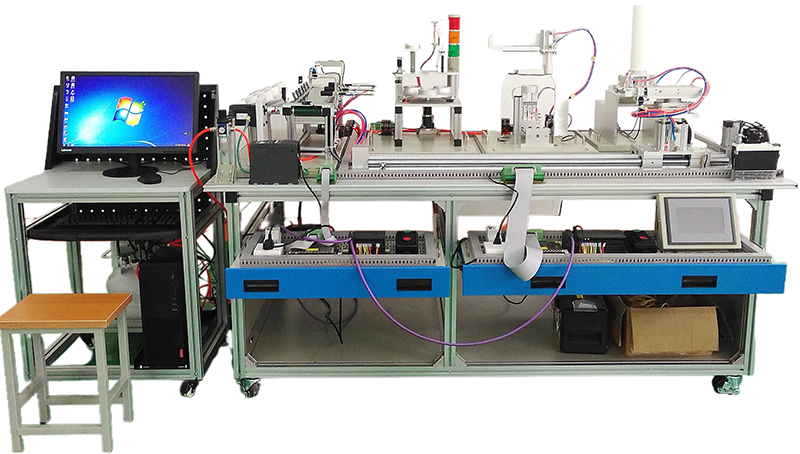 光機(jī)電一體實(shí)訓(xùn)考核裝置,光機(jī)電一體實(shí)訓(xùn)平臺(tái),自動(dòng)生產(chǎn)線實(shí)訓(xùn)裝置是在培養(yǎng)從事機(jī)電一體化設(shè)備的使用、維護(hù)、維修、設(shè)備的管理與設(shè)計(jì)等工作的高素質(zhì)、高技能、應(yīng)用型高級(jí)職業(yè)技術(shù)人才。是根據(jù)職業(yè)教育培訓(xùn)教材編寫《機(jī)電一體化專業(yè)》相關(guān)的技能培訓(xùn)要求而研制的,結(jié)合當(dāng)前工業(yè)自動(dòng)化應(yīng)用技術(shù)及器件技術(shù)的發(fā)展,充分考慮實(shí)用性、先進(jìn)性。根據(jù)任務(wù)引領(lǐng)式行為導(dǎo)向教學(xué)法,以重點(diǎn)培養(yǎng)學(xué)生的動(dòng)手實(shí)操能力,團(tuán)隊(duì)協(xié)作能力,創(chuàng)新能力。光機(jī)電一體實(shí)訓(xùn)裝置采用鋁合金導(dǎo)軌式,機(jī)械部件、PLC模塊、變頻器模塊、步進(jìn)電機(jī)(或伺服電機(jī))模塊、按鈕模塊、電源模塊、模擬生產(chǎn)設(shè)備實(shí)訓(xùn)模塊、接線端子排和各種傳感器、計(jì)算機(jī)等組成。以配合各個(gè)學(xué)校不同層次,不同專業(yè)的教學(xué)及培訓(xùn)要求。
