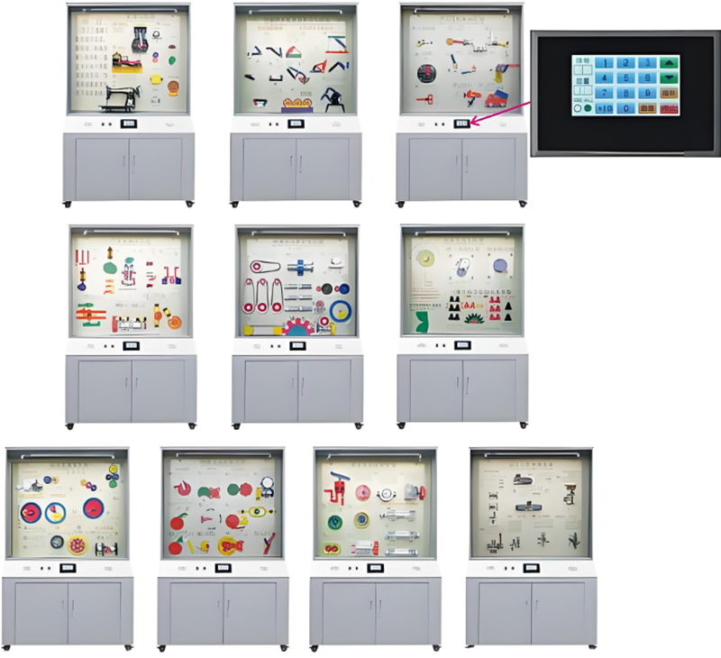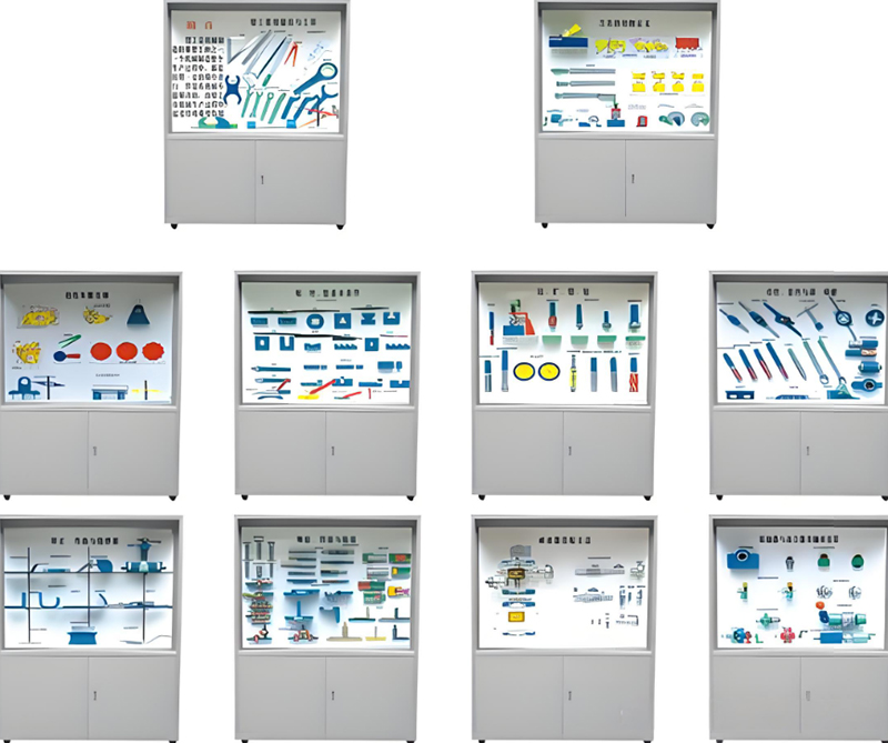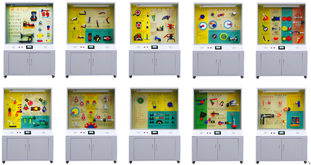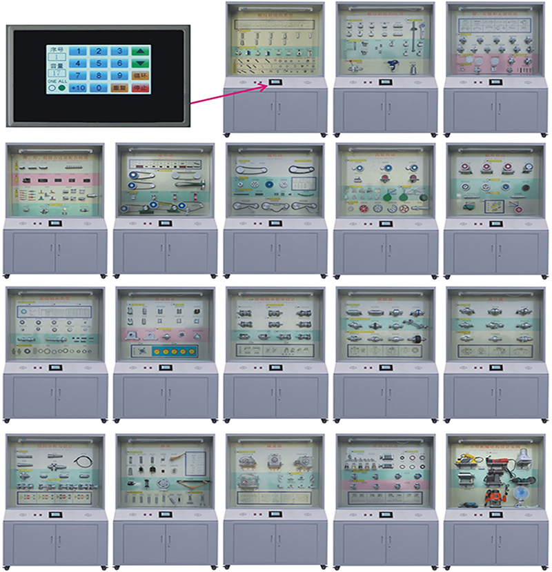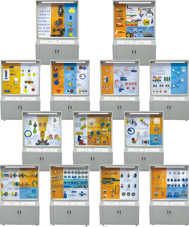 機械陳列柜,機械教學陳列柜,機械示教陳列柜,機械實訓設備,機械原理實訓室設備是按照根據大中專院校、職業(yè)學校的教學大綱設計,采用多媒體聲控同步解說演示,框架鋁合金結構,模型材料采用有機玻璃及硬塑制作而成,板面面板采用高強度室外寫真覆壓膜材料為底色,每柜進行彩噴圖文說明,通過演示可加強對機械專業(yè)學生的理論學習、使用范圍增強認識,加深理解,是機械專業(yè)系不可缺少的理想教具設備。