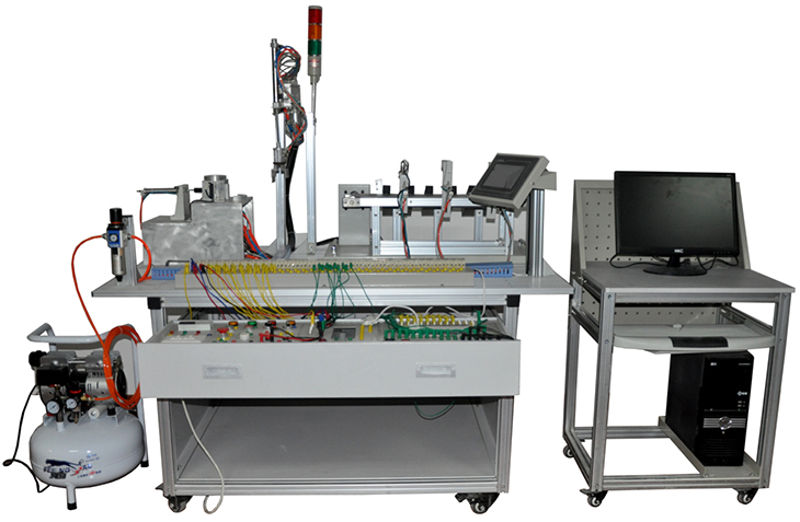 本設(shè)備主要包括實(shí)訓(xùn)臺(tái)架、典型的機(jī)電一體化設(shè)備的機(jī)械部件、PLC模塊、變頻器模塊、按鈕模塊、電源模塊、模擬生產(chǎn)設(shè)備實(shí)訓(xùn)模塊、接線端子排和各種傳感器等組成。整體結(jié)構(gòu)采用開(kāi)放式和拆裝式,實(shí)訓(xùn)裝置用于機(jī)械部件組裝,可根據(jù)現(xiàn)有的機(jī)械部件組裝生產(chǎn)設(shè)備,也可添加機(jī)械部件組裝其他生產(chǎn)設(shè)備,使整個(gè)裝置能夠靈活的按教學(xué)或競(jìng)賽要求組裝具有生產(chǎn)功能的機(jī)電一體化設(shè)備。