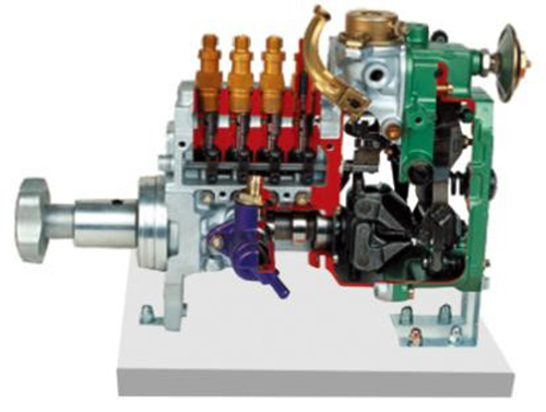 1.采用翻新柴油機(jī)12缸柱塞式高壓噴油泵一調(diào)速器總成(附件齊全)進(jìn)行解剖,各零部件齊全,能夠全面的展示總成的內(nèi)外結(jié)構(gòu)。