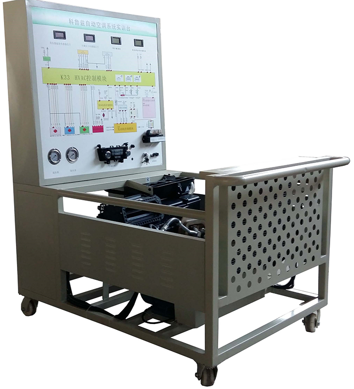2.由三相電機(jī)做為動(dòng)力源,帶動(dòng)空調(diào)壓縮機(jī)工作。操作空調(diào)控制面板,可真實(shí)演示汽車(chē)自動(dòng)空調(diào)系統(tǒng)的工作過(guò)程以及工作原理。