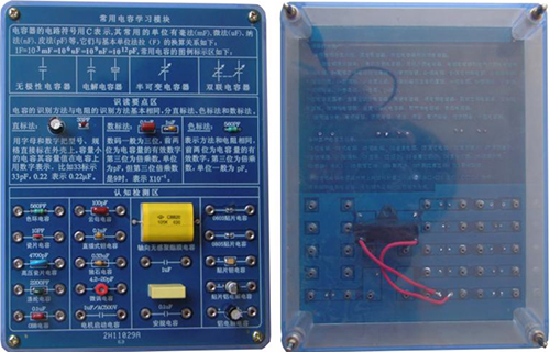 認(rèn)知檢測區(qū):提供色環(huán)電容、普通瓷片電容、高壓瓷片電容、滌綸電容、CBB電容、云母電容、直插式鉭電容、獨石電容、電解電容、微調(diào)電容、CBB61電機(jī)啟動電容、CBB20軸向無感聚酯膜電容、安規(guī)電容等若干典型通用電容;同時還按照封裝提供0603及0805貼片電容、貼片鋁電解電容、貼片鉭電容等若干貼片電容。