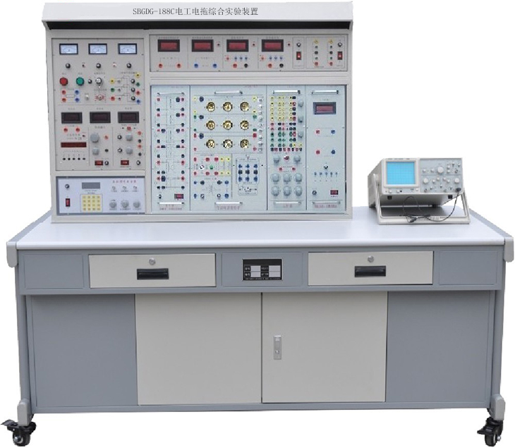 電工電子實(shí)驗(yàn)臺“通用電工實(shí)驗(yàn)設(shè)備”是根據(jù)職業(yè)學(xué)校、技工學(xué)校、中等專業(yè)學(xué)校的電工技術(shù)基礎(chǔ)、電工技能訓(xùn)練、電工學(xué)等有關(guān)教學(xué)實(shí)驗(yàn)大綱的要求而設(shè)計(jì)的。內(nèi)容有直流電路、交流電路、正弦與正弦電路、磁與電磁。該裝置符合勞動(dòng)部、機(jī)電部頒發(fā)的中級技術(shù)工人考核標(biāo)準(zhǔn)電工部分的內(nèi)容,是理論學(xué)習(xí)、實(shí)驗(yàn)驗(yàn)證、技能訓(xùn)練為一體的現(xiàn)代化電工實(shí)驗(yàn)成套設(shè)備。電工電子實(shí)驗(yàn)臺培養(yǎng)學(xué)生了解和掌握電子元器件及電工電子基本原理的能力,培養(yǎng)學(xué)生熟練使用電子儀器儀表的能力,為今后的專業(yè)實(shí)驗(yàn)、實(shí)訓(xùn)打下堅(jiān)實(shí)的基礎(chǔ)。電工電子實(shí)驗(yàn)室主要儀器設(shè)備:電工電子實(shí)驗(yàn)臺、常用儀器儀表等。電工電子實(shí)驗(yàn)臺主要實(shí)驗(yàn)或?qū)嵱?xùn)項(xiàng)目:分別開設(shè)強(qiáng)電和弱電的課程實(shí)驗(yàn)和課程設(shè)計(jì)。實(shí)驗(yàn)涉及課程包括電工學(xué)、模擬電路技術(shù)和數(shù)字電路技術(shù),主要實(shí)訓(xùn)課程有常用半導(dǎo)體材料及伏安特性的測試、集成放大電路、直流穩(wěn)壓電路、示波器的使用、數(shù)碼顯示電路、集成觸發(fā)器特性、555定時(shí)器、單穩(wěn)態(tài)觸發(fā)器、等非電類專業(yè)基礎(chǔ)實(shí)驗(yàn)課。通過驗(yàn)證性、設(shè)計(jì)性相結(jié)合的實(shí)驗(yàn)項(xiàng)目,使學(xué)生掌握基本電路模塊的設(shè)計(jì)、測試技術(shù),通過理論知識分析實(shí)驗(yàn)現(xiàn)象和排除故障的過程,使學(xué)生了解了系統(tǒng)設(shè)計(jì)與工程設(shè)計(jì)過程,提高了學(xué)生的實(shí)際動(dòng)手能力。電工電子實(shí)驗(yàn)臺、電子綜合實(shí)訓(xùn)設(shè)備,同時(shí)包含示波器、數(shù)字萬用表等配套設(shè)備。可開設(shè)我校醫(yī)學(xué)影像技術(shù)專業(yè)和醫(yī)用電子儀器與維護(hù)專業(yè)的《電子學(xué)基礎(chǔ)》、 《電工技術(shù)》、 《模擬電子技術(shù)》及《數(shù)字電子技術(shù)》等工學(xué)基礎(chǔ)類課程的實(shí)驗(yàn)實(shí)訓(xùn)。