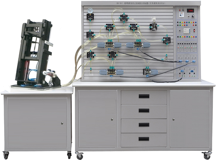 液壓與氣動技術實驗室設備、透明液壓實驗臺、氣動實驗臺、液壓元件拆裝實訓臺、透明液壓傳動演示實驗臺、液壓綜合測試實驗臺、智能液壓綜合實驗臺、機電液綜合實驗臺、雙面氣動傳動實驗臺、液壓氣動元件陳列柜、液壓挖掘機實驗臺、液壓起重機實驗臺、液壓裝載機實驗臺、透明液壓推土機實訓臺、液壓叉車控制教學實驗臺主要承擔機電類相關專業(yè)《液壓與氣動技術》課程的專業(yè)實驗任務。能提供包括液壓泵和控制元件結構拆裝與分析實驗、系統(tǒng)回路控制實驗、系統(tǒng)性能實驗和氣動技術實驗在內(nèi)的不同類型的實驗。液壓與氣動實驗室所開設的實驗和液壓(或氣動)行業(yè)中的液壓系統(tǒng)(或氣動系統(tǒng))的設計、連接調試、維護等緊密相關,通過機-電-液一體化綜合控制實驗,學生可系統(tǒng)地學習PLC程序設計與調試、液壓回路的設計與調試,并且通過碩博軟件使相關知識有機地結合在一起,實現(xiàn)對硬件的動作,從而提高各門課程的綜合應用能力。