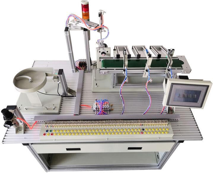 機(jī)電一體化實(shí)訓(xùn)設(shè)備,機(jī)電一體化實(shí)訓(xùn)裝置,機(jī)電一體化實(shí)驗(yàn)室設(shè)備現(xiàn)代高等職業(yè)教育特點(diǎn)是培養(yǎng)高技能型的人才。這就必須要加強(qiáng)對(duì)學(xué)生動(dòng)手實(shí)踐能力的培養(yǎng),才能適應(yīng)時(shí)代和社會(huì)對(duì)高職學(xué)生實(shí)踐能力和創(chuàng)新能力的要求。尤其對(duì)機(jī)電類專業(yè),社會(huì)需要的是既有理論知識(shí),又有實(shí)踐能力的務(wù)實(shí)性綜合型人才。針對(duì)高職機(jī)電類學(xué)生走上工作崗位之前開(kāi)展的機(jī)電一體化綜合實(shí)訓(xùn)所要求的內(nèi)容和技能,設(shè)計(jì)了一套適合高職學(xué)生特點(diǎn)的機(jī)電綜合實(shí)訓(xùn)設(shè)備。整個(gè)實(shí)訓(xùn)系統(tǒng)包含了電路電子技術(shù)、微機(jī)技術(shù)、自動(dòng)控制技術(shù)、傳感器技術(shù)、機(jī)械設(shè)計(jì)、液壓與氣壓傳動(dòng)等知識(shí)點(diǎn),可讓學(xué)生做這些知識(shí)點(diǎn)的單一的實(shí)訓(xùn),也可構(gòu)成整體進(jìn)行綜合實(shí)訓(xùn)。本實(shí)訓(xùn)系統(tǒng)主要設(shè)計(jì)了基于FX-2N系列的PLC控制的機(jī)電綜合實(shí)訓(xùn)教學(xué)平臺(tái)。