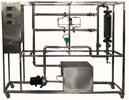 1、水轉(zhuǎn)子流量計: 流量范圍 0.4~4m3/h。 2、孔板流量計: 流量范圍0.4~8m3/h,孔板喉徑:Φ17mm。 3、文丘里流量計:流量范圍0.4~8m3/h,文丘里喉徑:Φ13mm。 4、渦輪流量計:流量范圍0.4~8.0m3/h,4-20mA遠傳輸出,流量檢測機構(gòu)。 5、壓差傳感器:量程0~150KPa,4-20mA遠傳輸出,差壓檢測機構(gòu)。 6、304不銹鋼離心泵:功率550W。 7、水箱:304不銹鋼材質(zhì),容積≥80L,帶貯水排空底閥,管路循環(huán)回水與泵吸入口間隔板設計。 8、管路:304衛(wèi)生級不銹鋼材質(zhì),采用不銹鋼快裝活接與管路連接;管道活接連接渦輪流量計。 9、閥門:采用304不銹鋼閥和優(yōu)質(zhì)銅閥。 10、溫度傳感器:Pt100,分辨率0.1℃,精度0.5%,數(shù)字顯示。 11、宇電AI501 流量數(shù)字顯示儀。 宇電AI501 溫度數(shù)字顯示儀。 宇電AI501 壓差數(shù)字顯示儀。 12、電器:接觸器、開關、漏電保護空氣開關。 13、304不銹鋼儀表柜:測控、電器設備在實驗架上。 14、外形尺寸:1900*500*1800mm(長×寬×高),304不銹鋼框架,帶移動腳輪及禁錮腳。 15、工程化標識:包含設備位號、管路流向箭頭及標識、閥門位號等工程化設備理念配套,使學生處于安全的實驗操作環(huán)境中。 |
