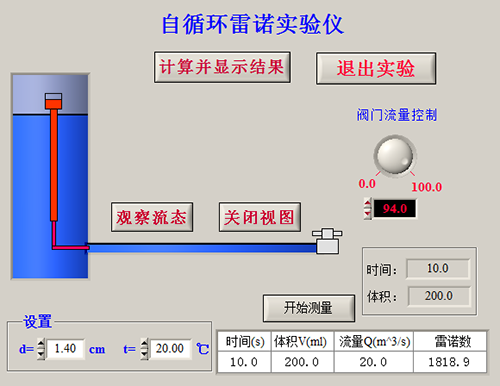 仿真演示軟件;能讓學(xué)生在電腦上更直觀地觀看模擬動態(tài)實驗,比如可以做成動畫軟件。移動式不銹鋼實驗臺、有機(jī)玻璃整流穩(wěn)壓水箱、雷諾管、顏料盒、顏料針管、計量箱、PVC板水箱、防腐潛水泵、循環(huán)管閥、7寸觸摸顯示屏、流量數(shù)顯裝置、控制箱、溫度傳感器DS18B20。