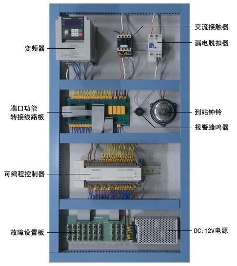 電梯的電氣控制系統(tǒng)采用PLC和交流變頻調(diào)速控制,其硬件結(jié)構(gòu)的組成及功能與實(shí)際電梯完全一樣。具有自動(dòng)平層、自動(dòng)關(guān)門、順向響應(yīng)轎內(nèi)外呼梯信號(hào)、直駛、電梯安全運(yùn)行保護(hù)以及電梯急停、慢上、慢下、照明、風(fēng)扇等功能,性能可靠、運(yùn)行平穩(wěn)、操作簡(jiǎn)單、能耗低,特別適合于教學(xué)。此外,透明仿真教學(xué)電梯的軟硬件均采用開放式結(jié)構(gòu),因此,院校也可以利用此套裝置進(jìn)行二次開發(fā)研究。